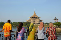 A few minutes later I reached the Waterfront a 1 km pedestrian area along the Sarawak River which is the place to stroll, meet people or simply hang out. There are pleasant views over the water to DUN (State Asseembly Building) & the Istana and the traditional trambang boats act as river taxis.